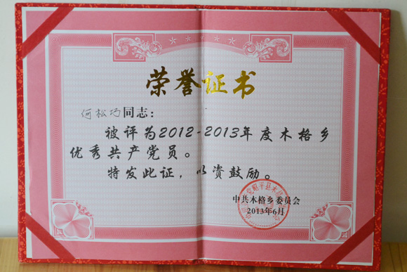 优秀共产党员荣誉证书